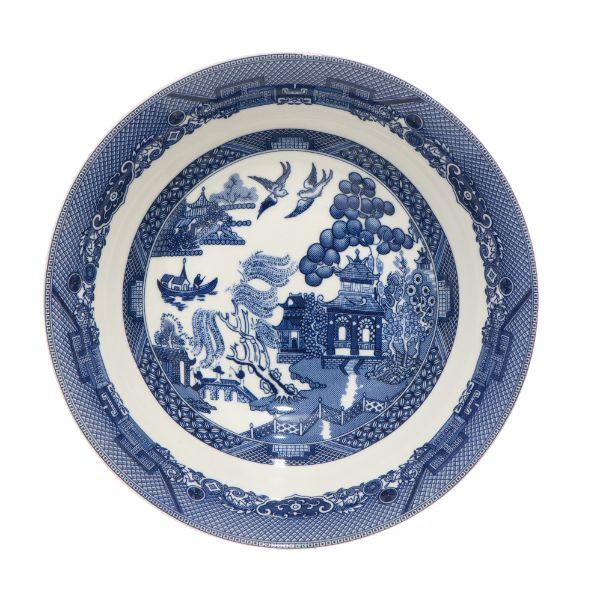 The legend of Blue Willow Pattern is a story of forbidden love in ancient times. Clouded by the mists of time, the tale goes that to escape the wrath of her rich father, a young girl elopes with her lover. Discovered on a small boat, the young lovers escape his wrath when divine intervention turns them into a pair of turtle doves. The boat, the birds, the willow tree, the bridge, the pagoda all combine into an eloquent design that tells the tragic story. These Blue Willow Pattern pieces are classic and encompass the traditional feel that has made Willow Pattern world famous.